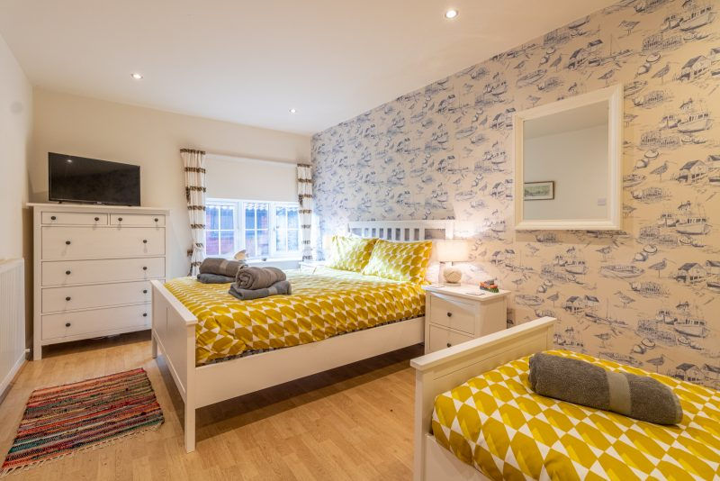 The cottage is spread over three storeys, as you enter into a good sized hallway. There is a ground floor master bedroom with king size bed and single bed with en suite. This family Jack and Jill style bathroom has a shower over a bath.