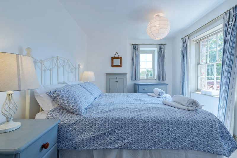 Bedroom one is a beautifully decorated dual aspect double bedroom with coastal views over neighbouring rooftops and also has a cast iron fireplace.
